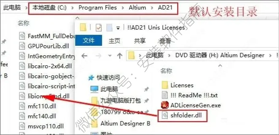 7、接下来将破解文件下的“shfolder.dll”复制到源程序安装目录下;安装目录【C:\Program Files\Altium\AD21】