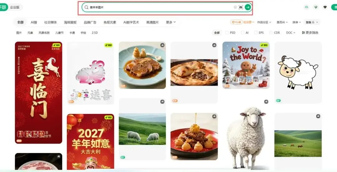 • 路径2:卡通小羊/童趣羊→筛选矢量→筛选海报/横图→筛选在线编辑→调整颜色适配需求。