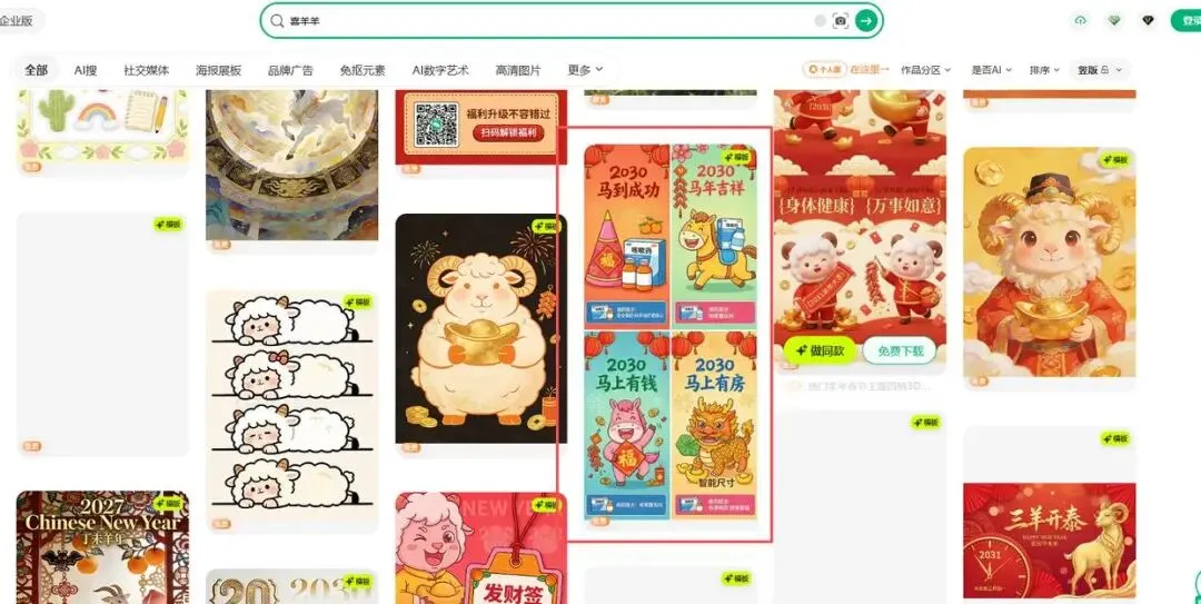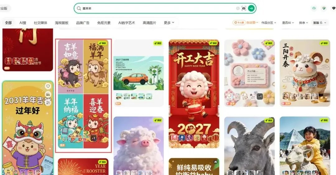 • 在千图网搜索“竖版 邀请 海报 羊”,可勾选“手机海报/竖版”筛选条件,精准匹配社群展示场景。