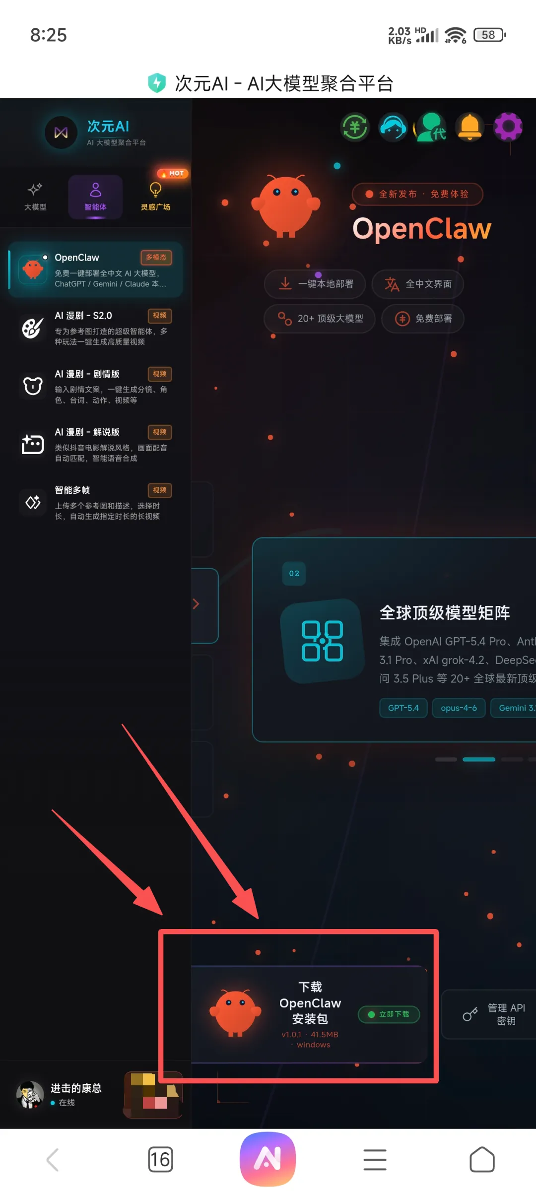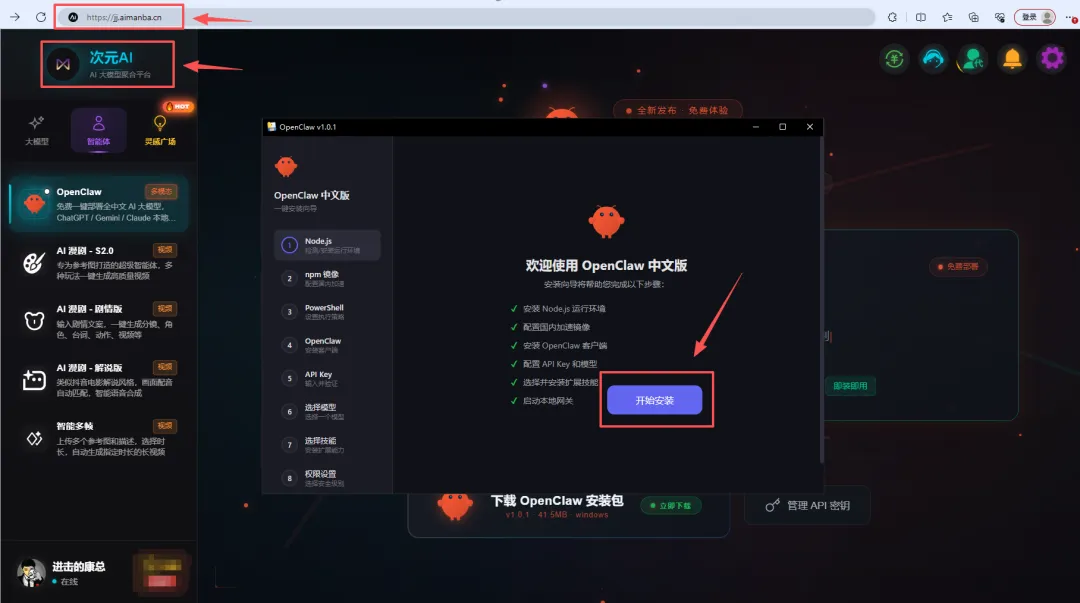 就能看到下载openclaw安装包的按钮,如下