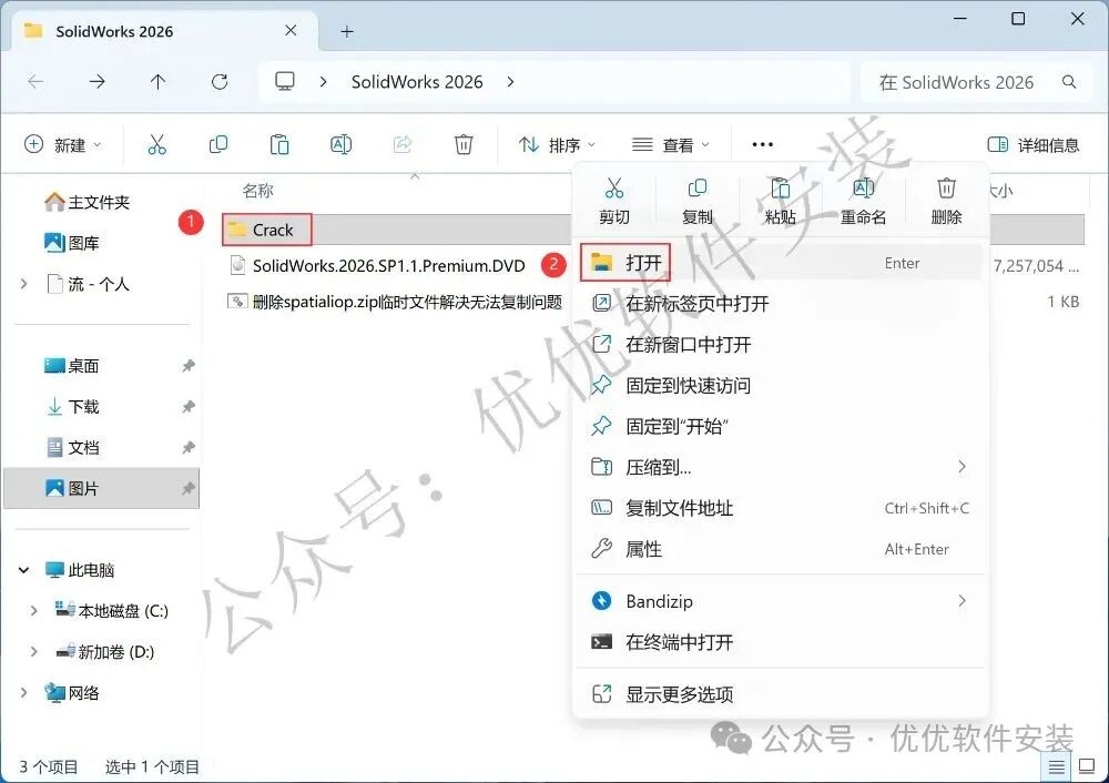 1、下载SolidWorks 2026软件安装包到电脑上,右键选择【解压到SolidWorks 2026\】