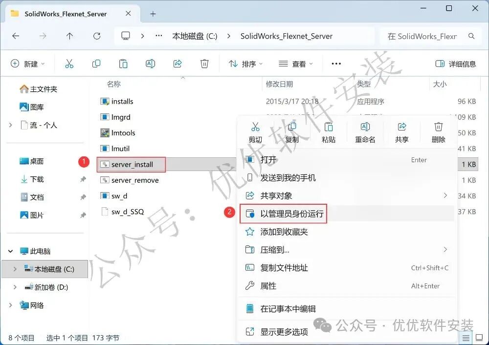 10、找到【server_install】程序,右键选择【以管理员身份运行】它