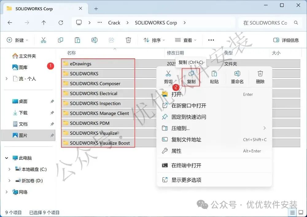 30、回到Crack文件夹,找到【SOLIDWORKS Corp】文件夹,右键【打开】它