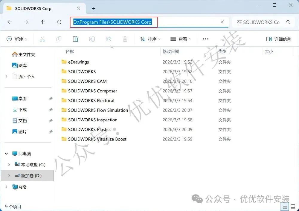 32、打开软件安装路径:D:\Program Files\SOLIDWORKS Corp,步骤19可查看