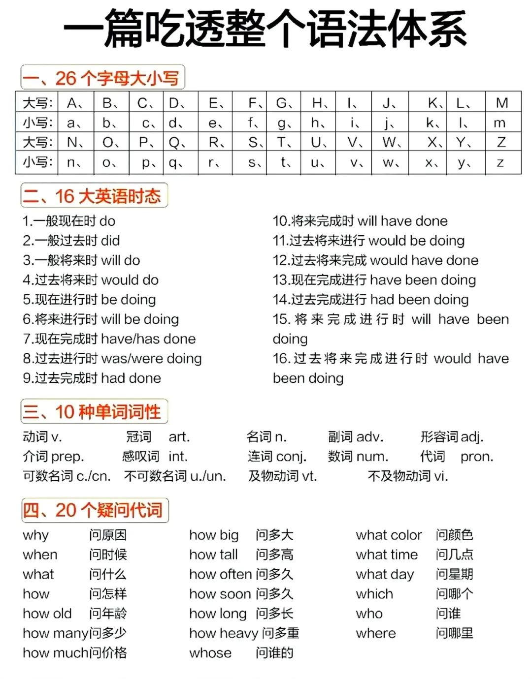 14页纸吃透整个英语语法体系,可免费下载