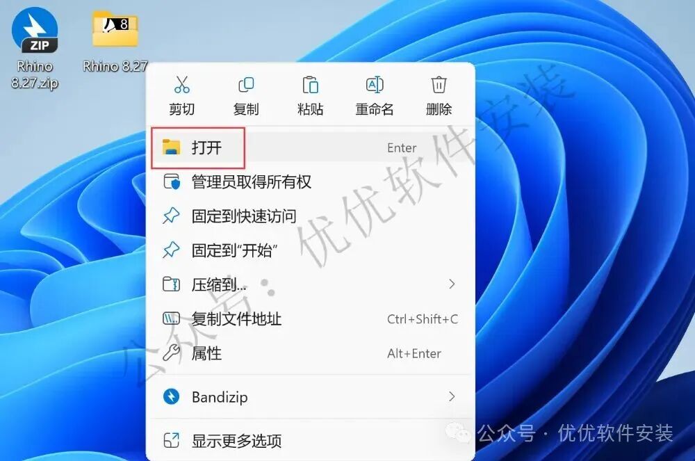 1、下载Rhino 8.27软件安装包到电脑上,右键选择【解压到Rhino 8.27\】