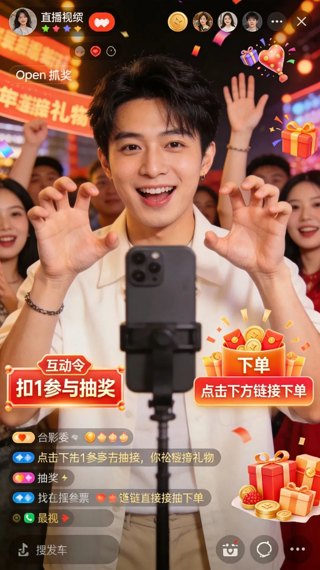 互动口令 下单指令动作 秒杀开始信号 抽奖开启仪式 例如:"扣1,Open Claw 开抢!" "Open Claw,福利放出来!"