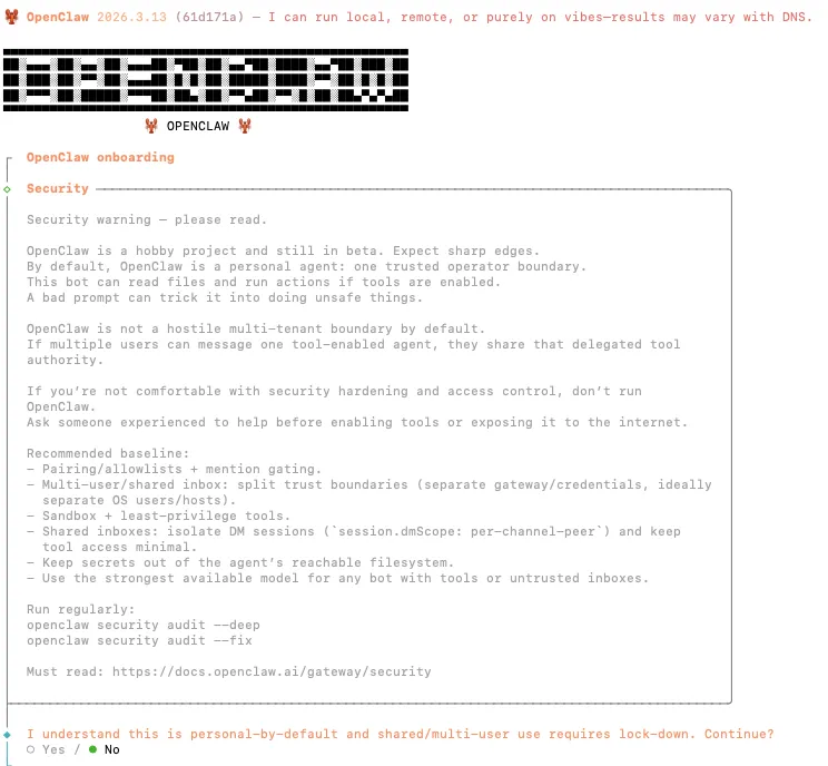 curl -fsSL https://openclaw.ai/install.sh | bash2️⃣ 配置OpenClaw (安装完,会直接开启配置)