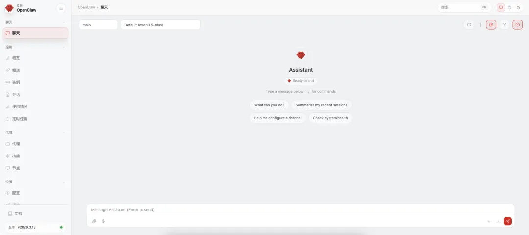 ㊗️ 这时候,浏览器会自动打开,出现下面的画面,恭喜你,你的OpenClaw,小龙虾就安装成功了!