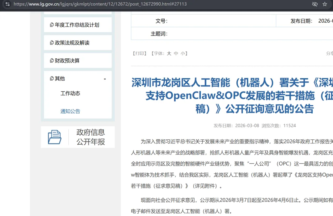 甚至龙岗区人工智能署甚至出了征求意见稿,免费部署服务、开放低空经济数据、最高200万补贴、买硬件补贴30%、买数据服务补贴50%。政策一条一条列得明明白白,就差没说OpenClaw是龙岗区新名片。