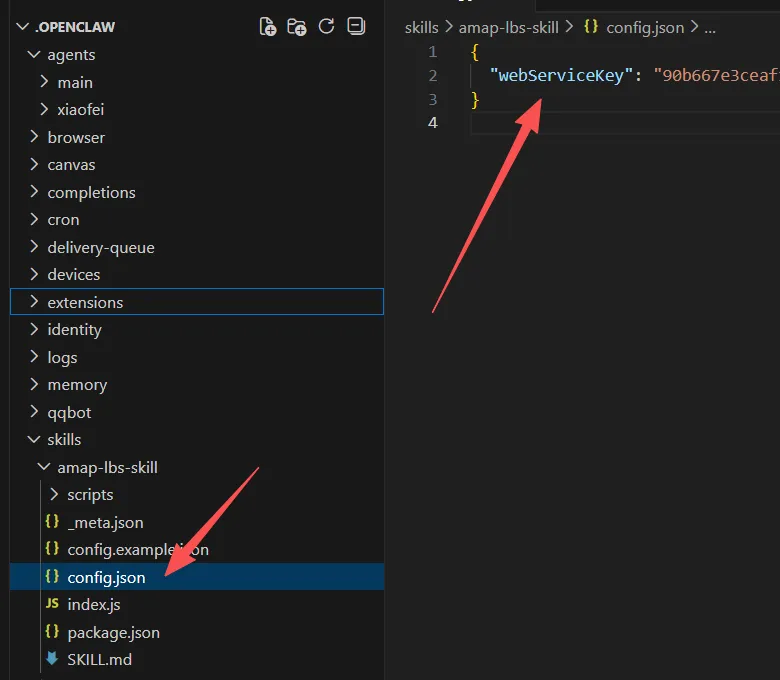 登录「高德开放平台控制台」→ 创建项目 → 获取 Web 服务 Key 配置环境变量或 Skill 配置项,例如: