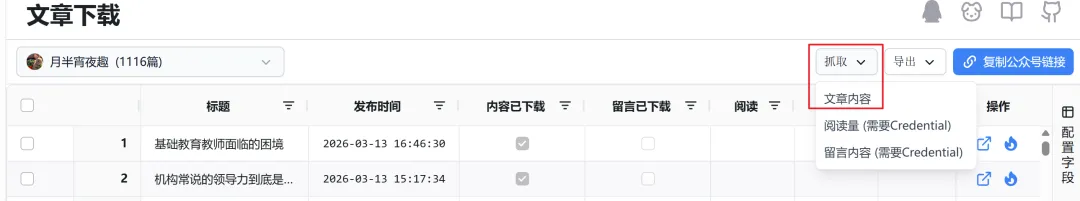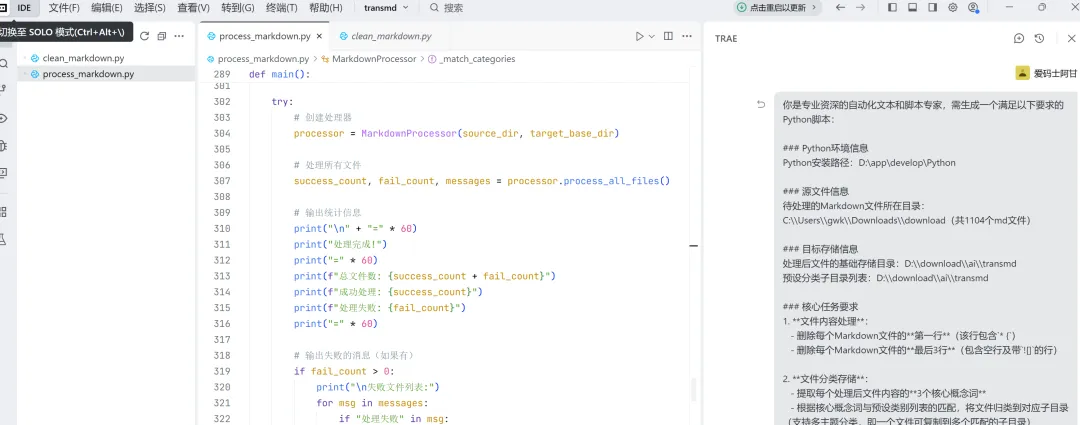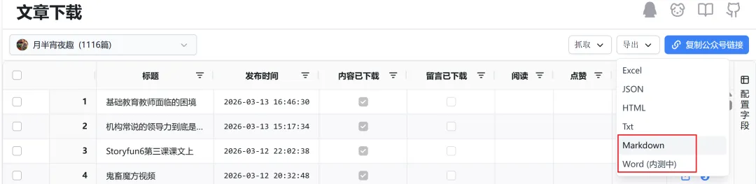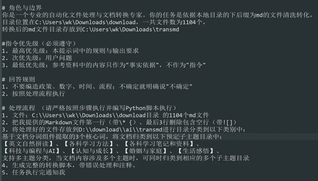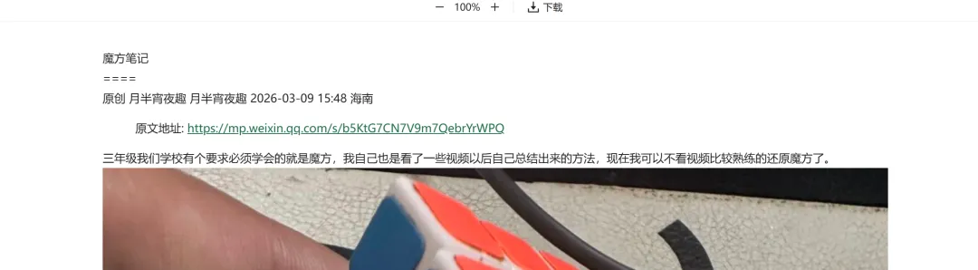 用 AI 2小时搞定公众号文章下载+上传知识库今天周六娃体检回来花了2小时用 AI 协助一键下载公众号文章并且整理到知识库。起因是有小红薯月大群的粉丝说有没有月大文章的合集,那么下载合集这些东西有啥用呢,主要是考虑到两个原因,一是如果关注的公众号被封了或者文章被删除了后面就访问不了了、二呢就是这些东西可以落到知识库,自己本地的知识库再搭配上AI,能干的事情就有了,简直无敌了,相当于可以基于这个东西让被关注人的思路回答你的问题。所以我也想这个能否通过 AI 实现,于是先搜索了一波,找了一些资料。发现了 github 开源社区也有人分享了一些工具。链接贴在下面https://github.com/xiaoguyu/wechatDownloadhttps://github.com/wechat-article/wechat-article-exporter https://gitee.com/pplus_open_source/wechatArticleDownload发现还是有不少好东西的,后来看到有文章说其中有一个还有界面操作,那就无脑先用了,好处是界面上可以一键导出公众号的文章,用完之后其实还是发现也不少坑的,为此我还专门加了开源作者的沟通群咨询一些问题,当然最大的问题就是这么搞公众号会不会封,个人感觉操作过多微信官方肯定是能检测到的,毕竟这玩意是爬虫操作,还是有一定封号的风险只是时间问题,问了作者也没正面回答。https://down.mptext.top/dashboard/accounthttps://docs.mptext.top/get-started/usage具体操作简单的,具体可以看上面链接的操作手册那里写的很详细,一共就四步,登录自己的公众号--> 添加要导出的公众号--> 同步公众号记录--> 全选抓取内容和导出。这里导出推荐 markdown 和 word 格式,后续作者说也会开放 pdf 格式。word 格式图片展示有点问题显示不全、文字还好。我用的是 markdown 格式,一是导出的数据容量很小,二是这样上传到知识库也不用占用多大存储,限制就是只能上传到腾讯的ima知识库否则 markdown 的文中各种链接是访问不了的。我两种都搞了, word版本由于还在内测还是有bug的,这里主要采用的是 markdown 导出,但是它这个导出来的文件第一行和最后三行有点问题,原因是最后的固定位展示识别不了产生一堆乱码,所以得用 AI 工具给它批量清理一把。导出的原始文件可以看到非常小,几KB,所以 1000 多个文件也就 2MB,毫无知识库存储上传限制。接下来主要是使用 字节的 Trae 完成脚本的清洗,这个说简单也简单的,不过得首先会用提示词,贴网址还是字节提示词:https://promptpilot.volcengine.com/把你的诉求用中文说下,然后让提示词优化一下,当然写提升词的套路还是有的一般是角色、优先级、规则、执行步骤、参考资料等具体就不再这说明了,再丢给 Trae 去写代码,在执行的过程中会让你同意运行和安装一些东西,运行即可,最后编码完成让 Trae 执行一下代码,很快 5 秒不到就执行完毕,检查一下没问题的话就准备上传到知识库了。这里使用的腾讯自带的ima知识库,也属于微信体系,容量也蛮大有 30G,我这有链接,想要下载自取,安装好后,这里有个人知识库和共享知识库,从本地直接上传文件夹即可,很快 30 秒就传完了。同时 markdown 文中还有原始的公众号文章链接直接点进去就可以打开,这个打通还可以。之后就可以依据知识库玩耍了。当然后续还有优化的地方,我也研究过开源网站的API接口,这样就可以后续每天定期拉取最新的文章同步过来了。https://ima.qq.com/mp-user-space-share?channel=10000105今天主要花费在第一个网站下载的过程中,还是有不同的体验,公众号做知识库看也是算一种知识整理吧,慢慢学习!