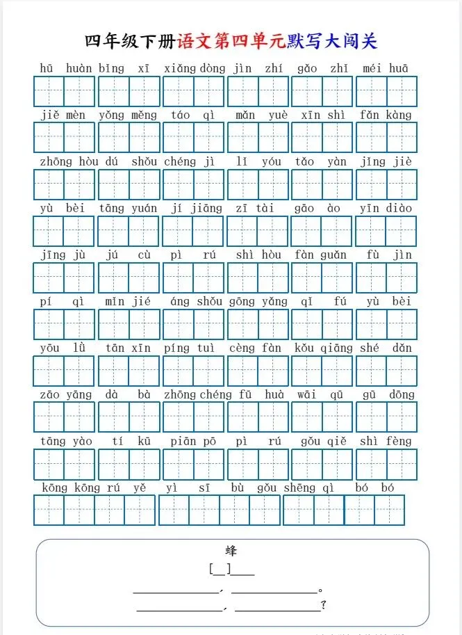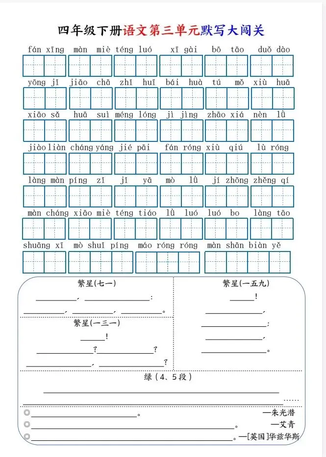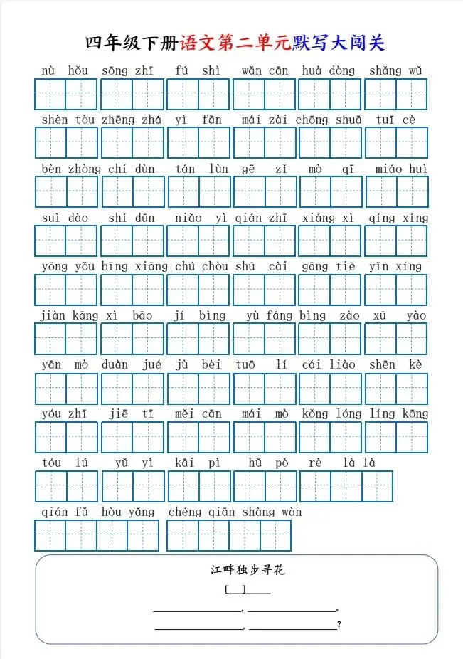 今天给大家整理了26春四下语文1-8单元默写大闯关(8页),转发给朋友或班级群,受益更多人,帮助孩子学习!