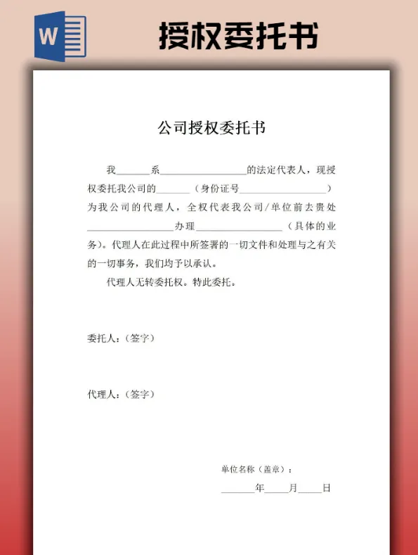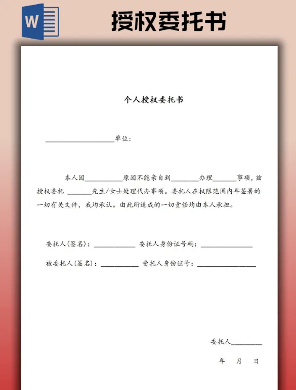 【2026】个人/公司授权委托书模板(word电子版可编辑)【免费保存下载】本文内容分享【2026】个人/公司授权委托书模板👇网盘打包下载👇https://pan.quark.cn/s/e492e0af032e#公司对个人授权委托书 #授权委托书通用模板以下是部分预览图展示以上仅为部分预览图点击左下方“阅读原文”,获取完整版
