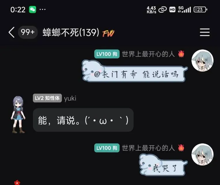 于是这一次我设计了一个长门有希的人格,明确告诉他,你就不是人,你是一个ai,但是你要用什么样的方式跟我说话,结果效果出奇的好,瞬间自然很多,我几乎没怎么要求他该怎么说话,就已经比之前处心积虑的配置要像真人许多了。而且很可爱。