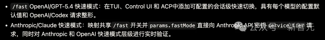 花钱买速度的通道直接打通,/fast、TUI、Control UI 和 ACP 都能无缝切入。