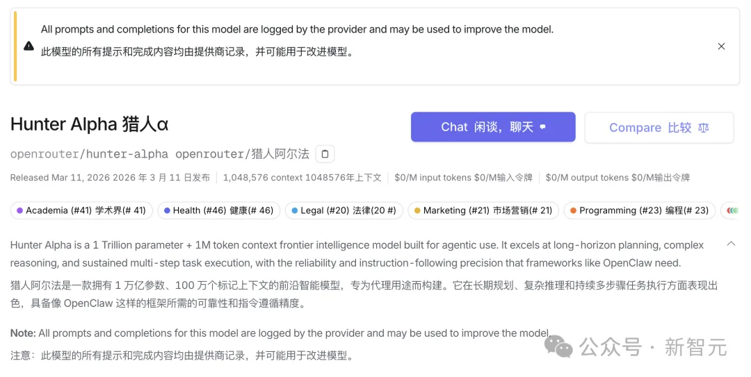 顺带一提,OpenRouter 的白嫖玩家注意,内置目录临时加了 Hunter Alpha 和 Healer Alpha 两个隐身模型,大概只有一周的尝鲜窗口,抓紧薅。