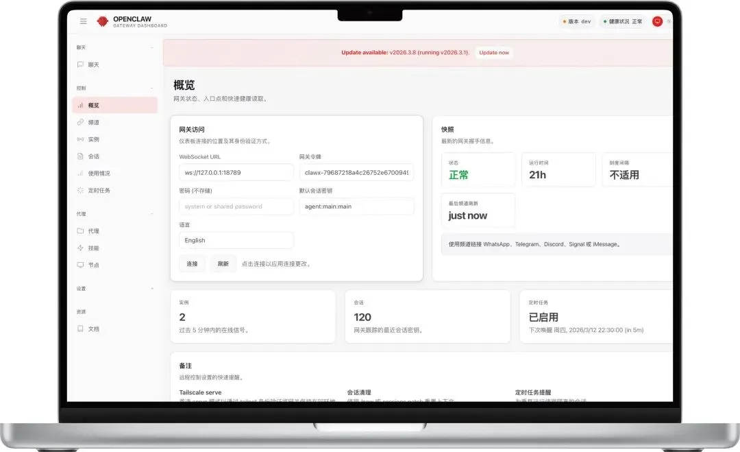 运行 openclaw gateway status 检查状态。 如果 5 项都没问题,查看底层实时日志抓虫,寻找红色的 ERROR 信息:
