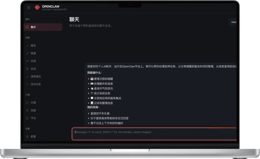 浏览器会自动弹到 http://127.0.0.1:18789。
