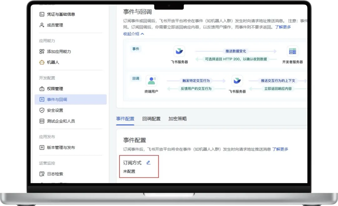 检查是否勾选 im.message.receive_v1。 - 接收方式选对了吗?