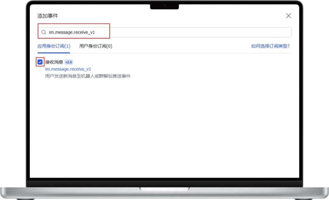 - 接收消息 (事件订阅):回到飞书网页,左边找“事件与回调”,订阅方式绝对要选长连接,保存。然后点击添加事件,搜