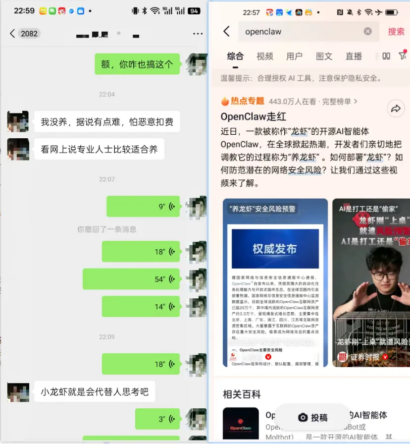 openclaw狂热,"全民小龙虾"背后的思考,是机会还是新型韭菜收割机2026年开年以来,一只红色的“小龙虾”搅动了整个互联网。我的家庭群里,连对AI发展一窍不通的表妹都在转发问我“有没有养小龙虾?”我先是好奇,然后惊奇的问,你为什么都搞起这个了?她的问题,像一面镜子,映照出这场OpenClaw狂欢最真实的底色:当一项前沿技术以“普通人唯一翻身机会”的夸张方式破圈,席卷至每一个对原理一无所知的普通人时,我在想,这到底是一场技术革命,还是借助技术想实现割普通老百姓韭菜的新型骗局。一、狂热的全民“养虾”这场风暴的起点清晰可见。当前我无论在朋友圈,B站,还是各种社交媒体平台上都在讨论“你养虾了没?”包括我自己公司的大屏上,也在循环播放养“虾“视频和一系列的关于小龙虾的学习课程。二、流量滤镜下的“唯一机会”:博主话术与大众心理在这种狂欢中,我也经常在各个视频平台上,鼓吹这个小龙虾有多厉害,比如书说AI时代,”普通人翻身的唯一机会“等夸大字眼,但这些博主们却鲜少能够说明白openclaw(小龙虾)的工作原理,更不曾提到背后的安全性问题和成本问题。这些话术精准锚定了大众的财富焦虑与错失恐惧。他们将复杂的AI智能体,简化为一个诱人的财富故事:你不需要懂原理,它就能自动为你创造被动收入。在这些博主的鼓吹下,网络上甚至出现了很多代人安装小龙虾的服务,费用一般在几十到一百多不等(在我看来这些都是在割韭菜),比如淘宝在业内,openclaw号称“数字员工”,以前的大模型(LLM)是会思考的AI,你问他问题他会帮助你思考,但是他没法真正的帮你执行,openclaw出来后,他会真正的棒你执行,就像给AI装上了四肢,他能开始棒你干活了,你只需要在微信或者飞书等IM平台上发个消息即可。、但就因为如此很多人只看到了他能做什么,却没想过他背后的原理、成本和安全性问题。在我个人看来,用一个不恰当的比喻来看,你可以把它想象为电脑病毒,“如木马程序”。只不过以前的木马程序是在你无感知的情况下安装的,你也无法给他发出指令。但openclaw(小龙虾)是你主动安装的,你还能对他发出指令要求他干啥(但同时,openclaw也可能干一些你预想不到的事情)三、钱不入急门:投资与学习的共通内修回顾这场OpenClaw狂欢,它像极了投资市场的故事重演。一个新鲜概念伴随宏大叙事出现,人们蜂拥而至,关心的不是原理,而是“我能不能赚到钱”。结果往往是,最早看清原理的极客和机构成为弄潮儿;而大多数被风口裹挟的普通人,只能成为被收割的人。钱,从来不会流入急功近利者的口袋,往往想赚块钱的人也是赔钱最快的人。这与投资世界的铁律简直一模一样:真正的价值,源于深刻的认知。你需要了解一个行业的商业模式,而不是仅仅听说它“很火”。对待OpenClaw这样的技术,同样如此。它的爆发确实标志着一个新时代:AI正从“动嘴”进化成“动手”。但对于每个个体而言,比盲目追逐更重要的,是“内修”。去真正理解什么是智能体、什么是提示词工程。是像学习任何有价值的知识一样,投入时间,厘清原理,从小处实践。当我的表妹再次问我时,我会告诉她:别问它能不能赚钱,先问问自己是否愿意花一周的时间,去弄明白它到底是什么。机会永远属于有准备的人,而真正的准备,始于祛魅,始于学习,始于在喧嚣中保持冷静的思考。在AI加速渗透的今天,保持理性、持续学习、深入本质,或许才是我们每个人最值得部署的“底层智能体”。这场狂欢,你参与了吗?你是如何看待OpenClaw背后的机遇与风险的?欢迎在评论区分享你的观察与思考。