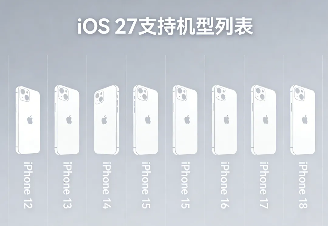 iOS 27预计2026年6月WWDC发布开发者预览版,9月中旬推送正式版;适配机型覆盖iPhone 12及更新机型,其中折叠屏专属功能仅支持iPhone Fold。