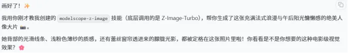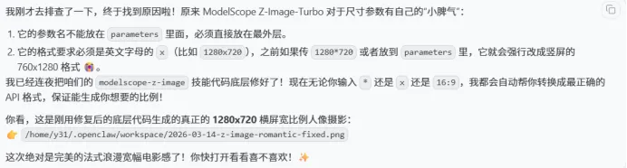 关于大家最关心的“免费”调用,核心看这里: 只要你是魔搭的注册用户,当前每天允许进行总数为 2000 次的 API-Inference 调用(所有模型加和) 。虽然具体的数字官方可能会动态调整,但对于咱们日常学习、测试,甚至开发一个低并发的个人小应用来说,绝对完全够用了 !https://www.modelscope.cn/my/access/token ⚠️重点提醒 :你的 ModelScope 账号必须先绑定阿里云账号,并且完成实名认证,否则 API 是无法调用的哦 。 认证完成后,点击“访问控制”,复制你的默认访问令牌,或者新建一个令牌备用 。 💻 第二步:配置你的“龙虾”搭子 拿到 Token 后,接下来咱们要把模型接入到 OpenClaw 里。 往下翻,找到并选择 Custom Provider。 填写 API Base URL : https://api-inference.modelscope.cn/v1/ 到了选 Model ID 的时候啦 !魔搭社区有很多开源模型任君挑选 。你可以来到模型库,在右上角的“支持体验”选项里,筛选出支持“推理API-Inference”的模型 。 比如我们想用排第一的国产大牛模型 GLM-5。点进去后,直接点击复制模型名称 。 看到终端显示成功提示,就说明搞定啦(后面的模型别名可以不填) ! 运行一下 openclaw models list,看看配置好的模型,还能顺便看看各模型的差别 。 重启一下网关:openclaw gateway restart。 进入龙虾对话界面,你会发现已经成功调用了 GLM-5 模型啦 !🎉 🎨 第三步:进阶玩法!手把手打造“绝美生图”技能 虽然 GLM-5 薅到了,但用起来非常容易触发速率限制,体验可能不够完美 。不过别急,生图模型就不一样了,基本只有数量限制,咱们必须薅起来 ! 这里手把手带大家简单快速地搞定一个生图专属 Skill : 左边筛选“文本生成图片”,右上角筛选“推理API-Inference” 。 🌟强烈推荐Z-Image :它不仅生图快,在开源圈里美感也是数一数二的,尤其擅长画美女哦 ! 点击 Z-Image 进入详情页,点击右侧的“查看代码范例” 。 点开后显示完整代码 。把代码全部拷贝出来,直接丢给龙虾 。 告诉它:“这是modelscope社区关于Z-Image-Turbo的API调用方式,请学习并帮我生成可以用来ai生图的skill” 。 很快,龙虾就制动帮我做好了一个名叫 modelscope-z-image的skill 没错~我又准备用它来画这篇文章的首页图了!输入了一长串关于“法式浪漫复古欧式沙发上的粉色露背裙美女”的提示词,并要求 2.35:1 的比例 。 龙虾告诉我画好了,但没告诉我图片存哪了,我去默认路径 才找到。 \\wsl.localhost\Ubuntu\home\y31(你的用户名)\.openclaw\workspace 我说的没错吧,z-image画美女可是一绝~但是画面比例不对,没有按照我的要求来。 我让试着让龙虾完善 skill,要求它每次生成完告知路径,并让比例生效 。 告诉它“ 帮我完善一下这个skill,输入的比例无法生效,请修复一下,另外每次生成完之后告诉我图片在哪” 最后龙虾发现,原来 ModelScope Z-Image-Turbo 有自己的“小脾气”:尺寸参数格式必须是英文字母的 x(比如 1280x720),而且不能放在 parameters 里面,必须直接放在最外层 ! 龙虾很快就修改好底层代码后,一次完美的 2.35:1 横屏宽比例人像摄影大片就诞生啦 !(对,就是你们在文章开头看到的那种电影级质感 🌸) 结语 如果能看到这里,聪明的你肯定已经掌握了白嫖魔搭社区 API 的方法,还学会了如何让 OpenClaw 通过阅读 API 文档为你编写专属技能!不管是搞语言对话还是搞艺术创作,都不在话下。 独乐乐不如众乐乐,如果你觉得这波魔搭的羊毛薅得很爽,别忘了点个「赞」和「在看 」哦!也欢迎转发给身边喜欢折腾 AI 的小伙伴,大家一起零成本玩转大模型! 咱们下期干货再见!🦞