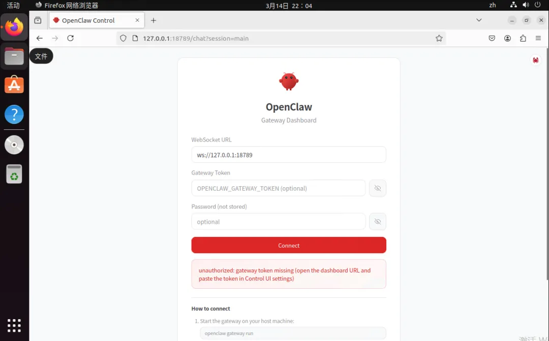 ####要在ubuntu系统中执行openclaw dashboard会显示token将token复制到页面中的gateway token