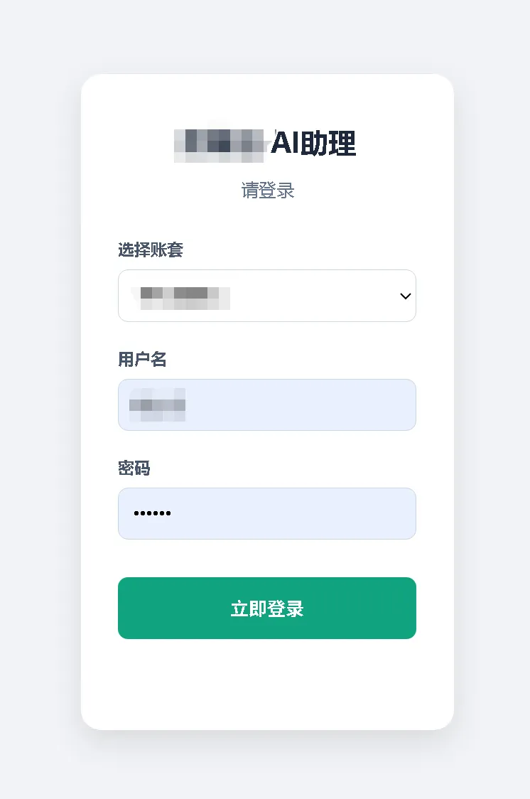 账套与业务对齐:登录时强制选择业务账套。 精准的角色提纯:ERP 系统中通常有几十上百种角色,但 AI 助手在登录获取 Profile 后,会在前端进行严格的“角色提纯”,自动过滤并只保留与数据分析强相关的核心角色(如:总经理、销售经理、销售顾问)。