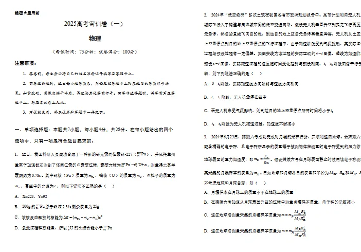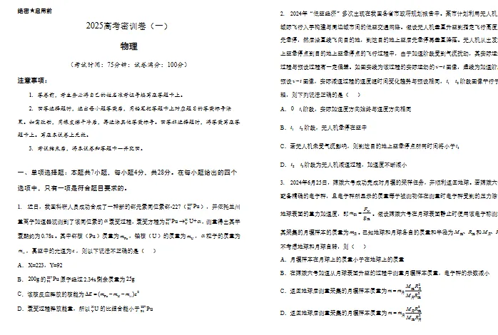 2025高考物理全套押题密训卷|可下载打印点击上方“语数英父母学堂”↑↑↑关注我版面有限,不过多展示需要直接拉至文末下载完整电子打印版免费领取方式▲点击上方 语数英父母学堂 在公众号消息框发送:5246,即可免费领取