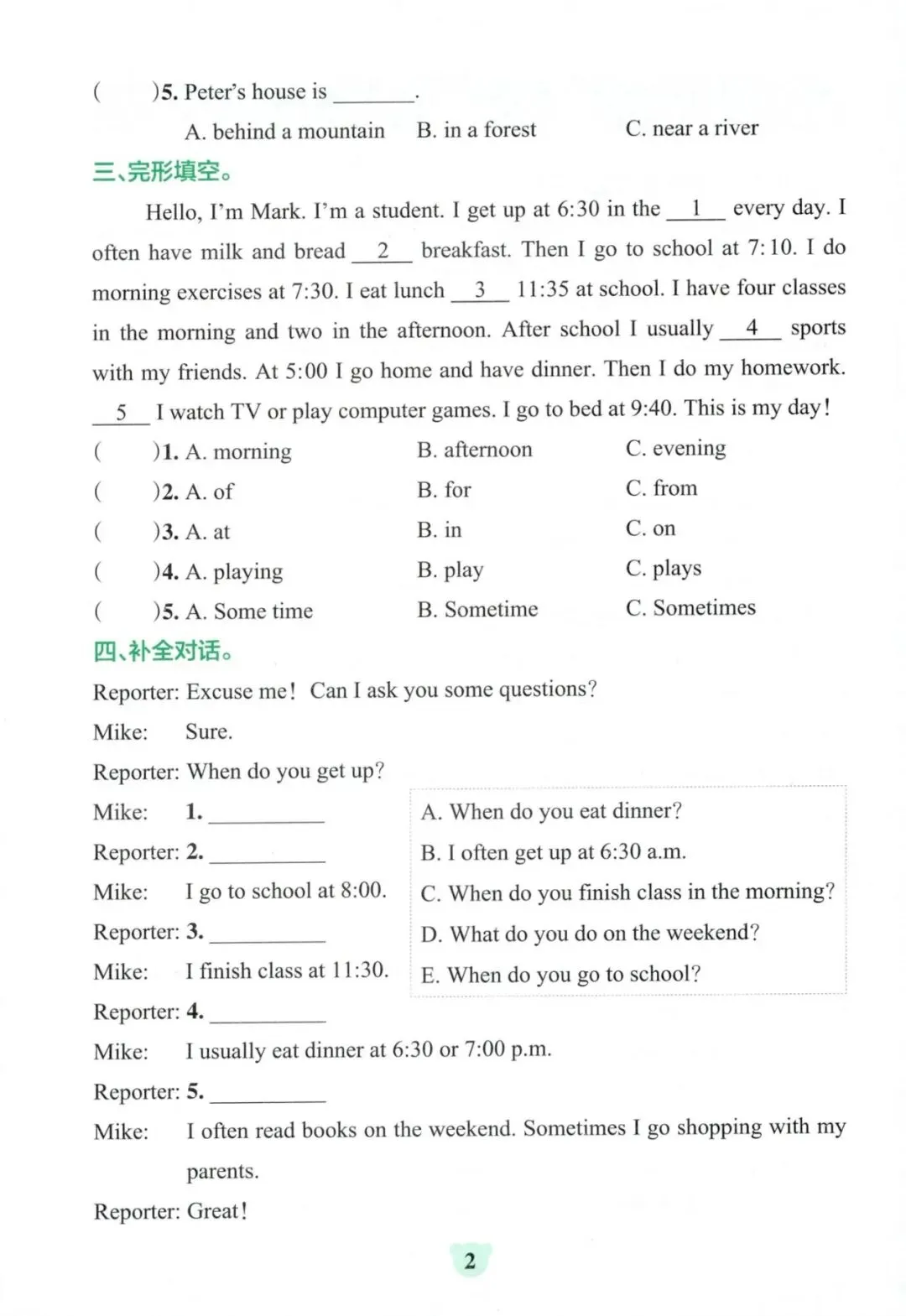 ●人教版PEP五年级下册英语Unit 2 Main scene电子课本和听力动画