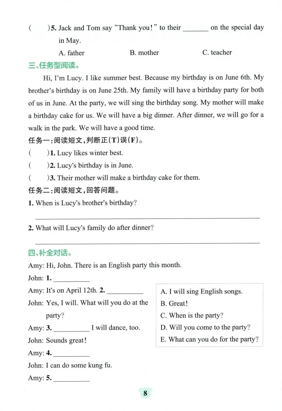 五年级英语下册(PEP三起)课文朗读、单词朗读、预习复习资料等
