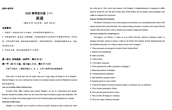 2025高考英语全套押题密训卷|可下载打印点击上方“语数英父母学堂”↑↑↑关注我版面有限,不过多展示需要直接拉至文末下载完整电子打印版免费领取方式▲点击上方 语数英父母学堂 在公众号消息框发送:5248,即可免费领取