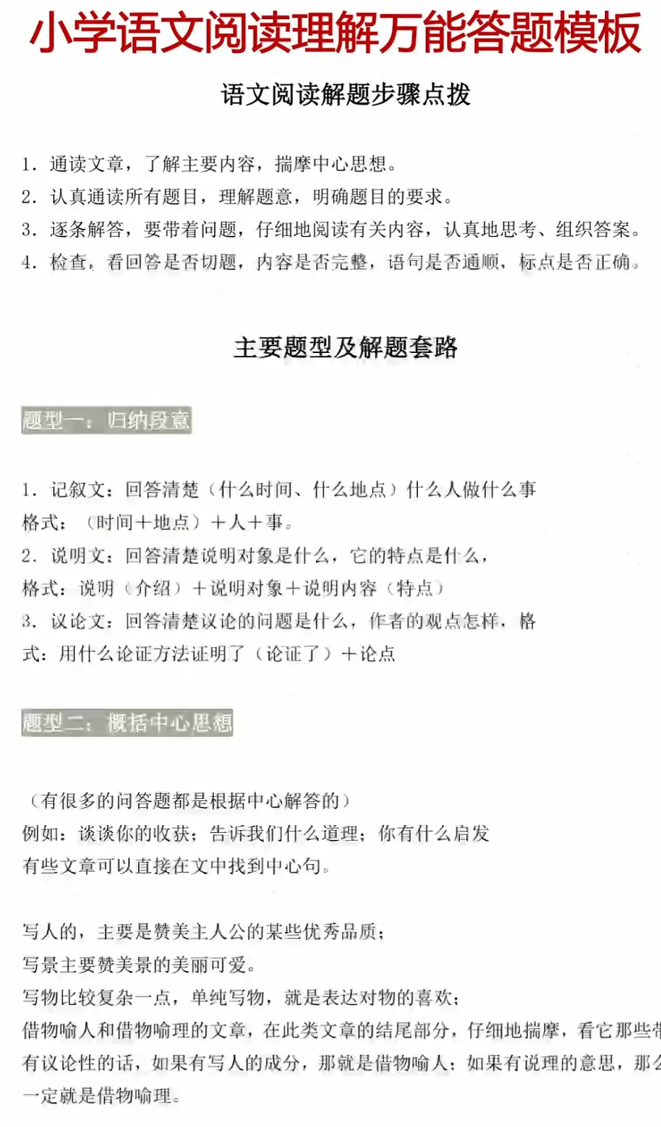 包含阅读理解,句子仿写,看拼音些词语,成语填空,思维导图等