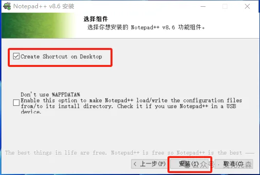 8,勾选【Create Shortcut...】,然后点击【安装】。