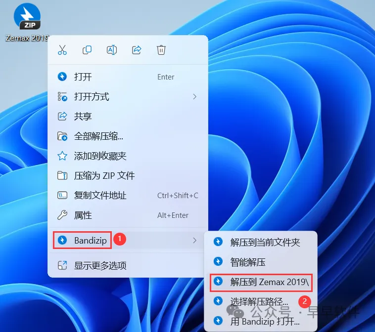 1、下载Zemax 2019软件安装包到电脑上,右键选择【解压到Zemax 2019\】