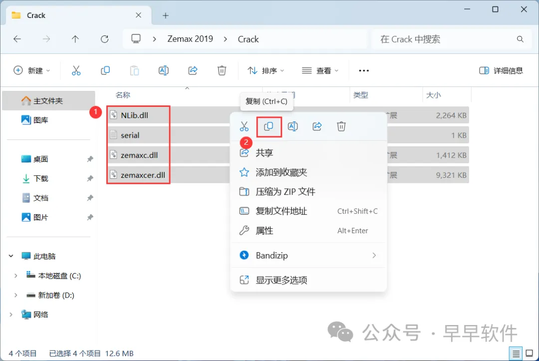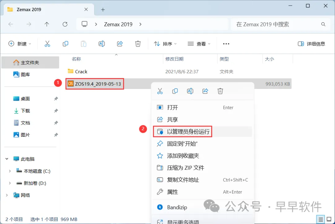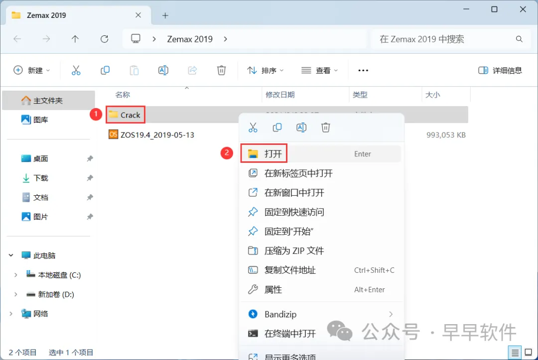 14、回到Zemax 2019文件夹,找到【Crack】文件夹,右键【打开】它