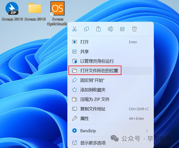 16、回到桌面,右键桌面上的【Ansys OpticStudio软件图标】,点击【打开文件所在的位置】