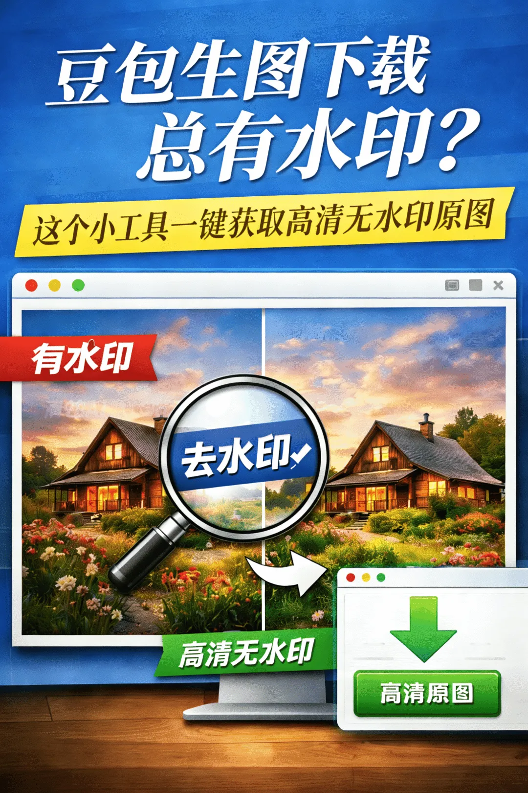 但是呢,凡事都有个“但是”,用过豆包生图的朋友肯定都有个痛点,那就是它生成的图片,往往自带水印。这就像你做了一道精美的菜,结果盘子上不仅有裂纹,还印着饭店的广告,这就很令人头秃。虽然只是个小水印,但对于强迫症,或者想拿图片做素材、做壁纸的朋友来说,那个水印就像眼里的沙子,怎么看怎么别扭,想要去水印吧,用PS太麻烦,用在线工具又怕压缩画质,今天就给大家淘来了一款非常冷门但极其好用的神器,专门针对豆包生图进行去水印,而且是“吾爱”社区的大佬出品,懂行的都知道,这几个字就代表着精品。
