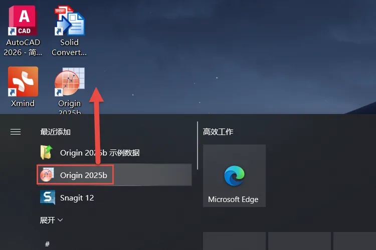 23.回到桌面,打开“开始菜单”,找到"Origin2025b”图标,拖到桌面。