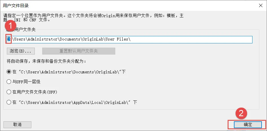 30.①将"C:\……”更改为"D:\……”,②点击“确认”。