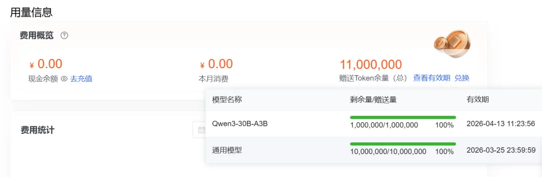 系统将自动发放1000万Tokens 。
