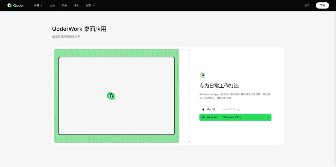 浏览器内输入:https://qoder.com/zh/qoderwork,即可进入官网首页。