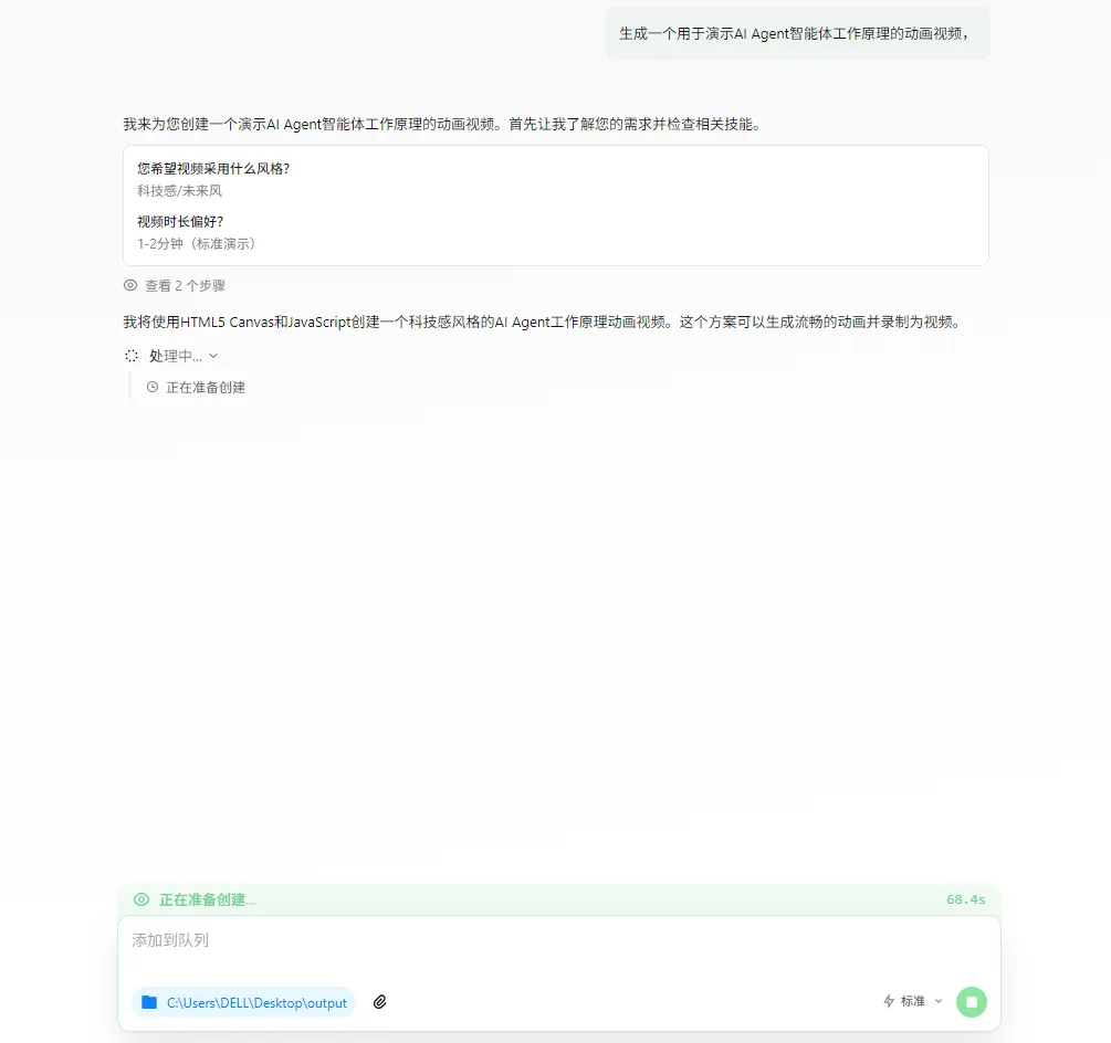 生成一个用于演示AI Agent智能体工作原理的动画视频。