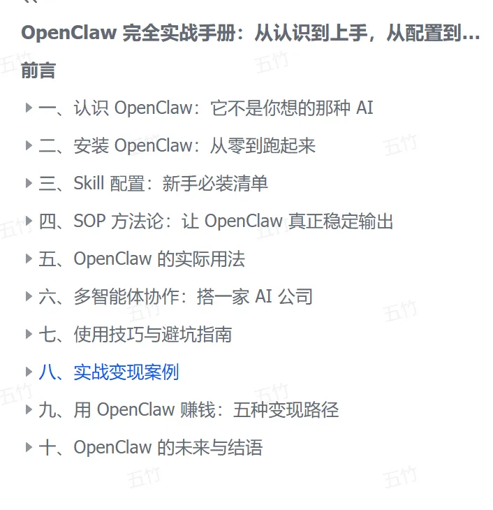 这3份《OpenClaw实战指南》传疯了!你好呀,我是鸟哥!最近OpenClaw太火了,人人都在养龙虾!我也不例外,昨天还在用OpenClaw给自己写了一本书,后面会把整个过程都分享出来!今天就给大家分享几个我正在研究的OpenClaw的学习资料!看看你们可需要,想要的文末自取!没有套路01.两份OpenClaw本地部署文档。一个是Mac,一个是Window。之前都推荐大家要用服务器部署。一个是因为安全,一个是因为简单。但有些场景我必须要部署在本地电脑上,比如处理本地数据,控制本地电脑,等。我今天试了一下,本地部署的快乐,其实就相当于把很多大模型搬到了自己的电脑上。这种感觉太爽了~02.一份实战指南这两个是咱们交流群的小伙伴分享的,很不错。我也算是借花献佛了。需要的扫码👇或者🔍:wuzhuv2