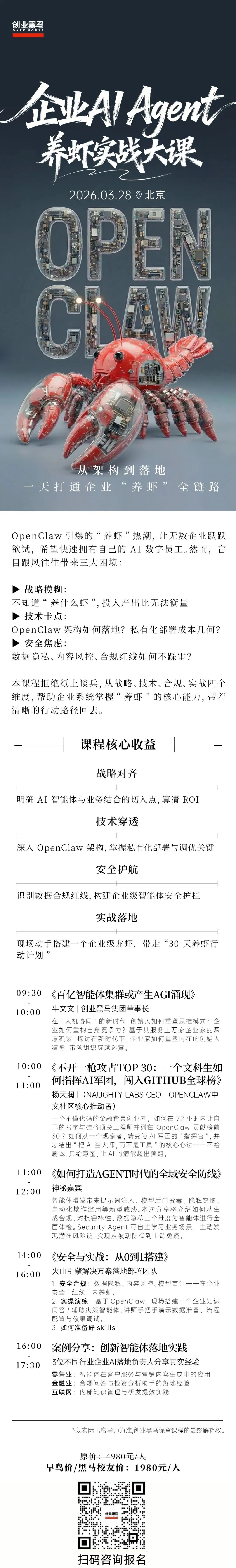 • 现场动手搭建一个企业级“龙虾”,带走一份可执行的“30天养虾行动计划”。