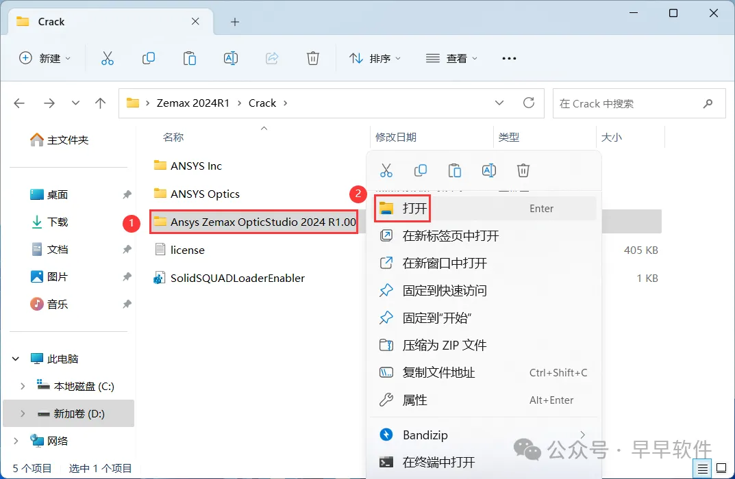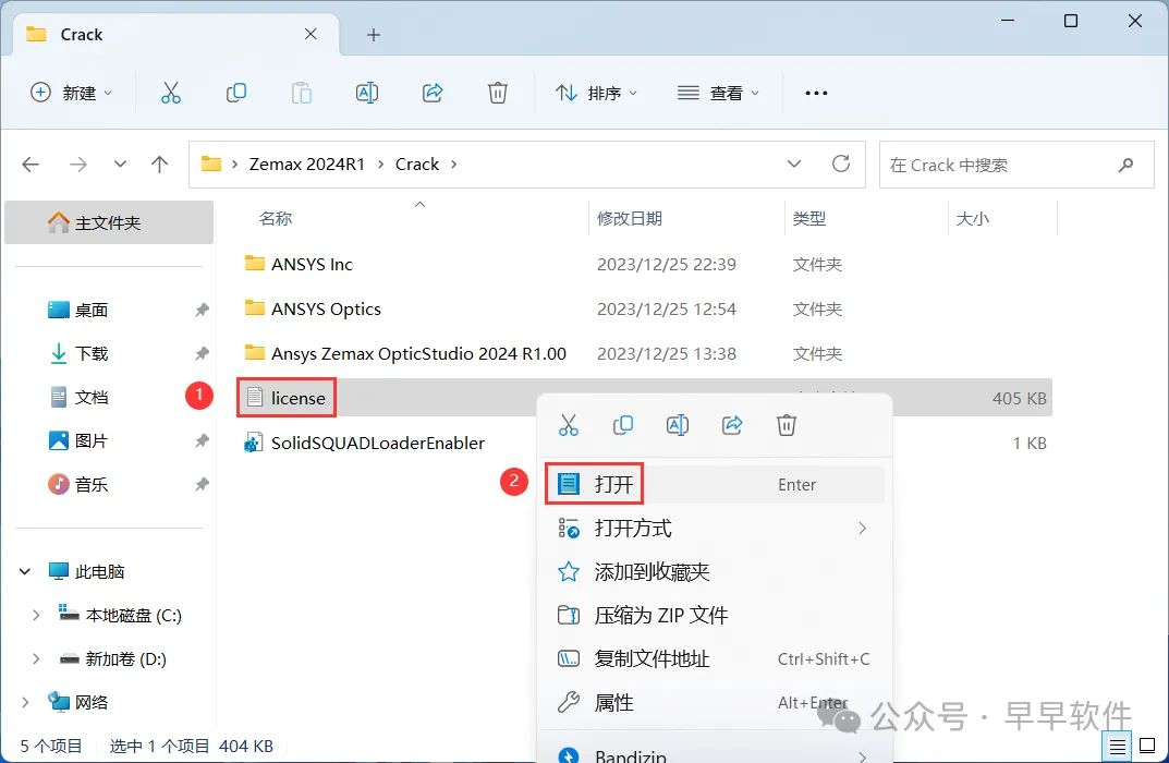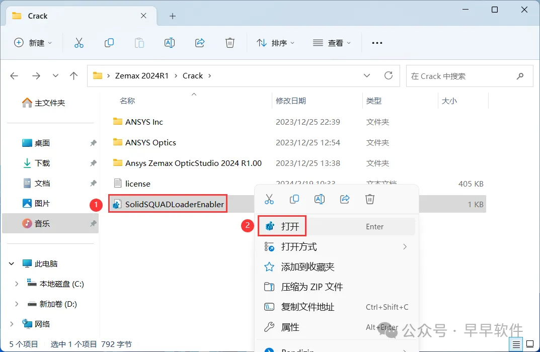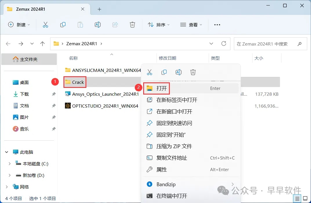 15、回到Zemax 2024R1文件夹,找到【Crack】文件夹,右键【打开】它