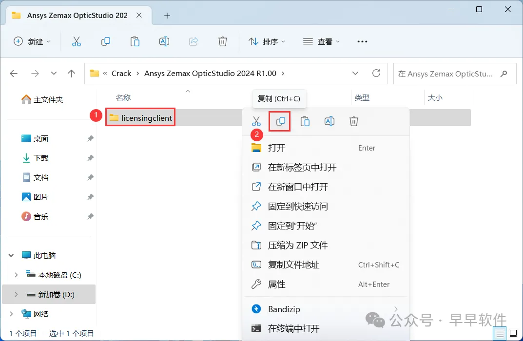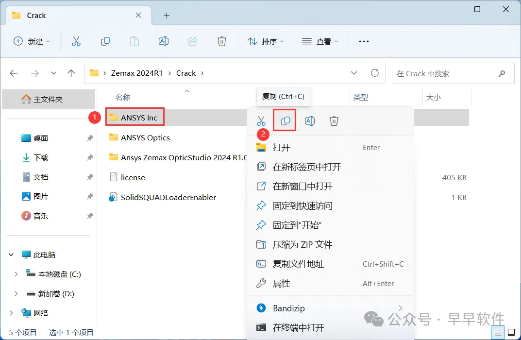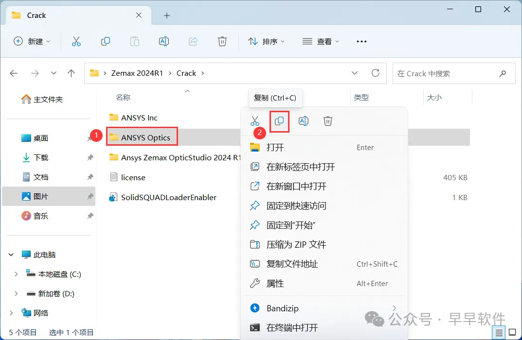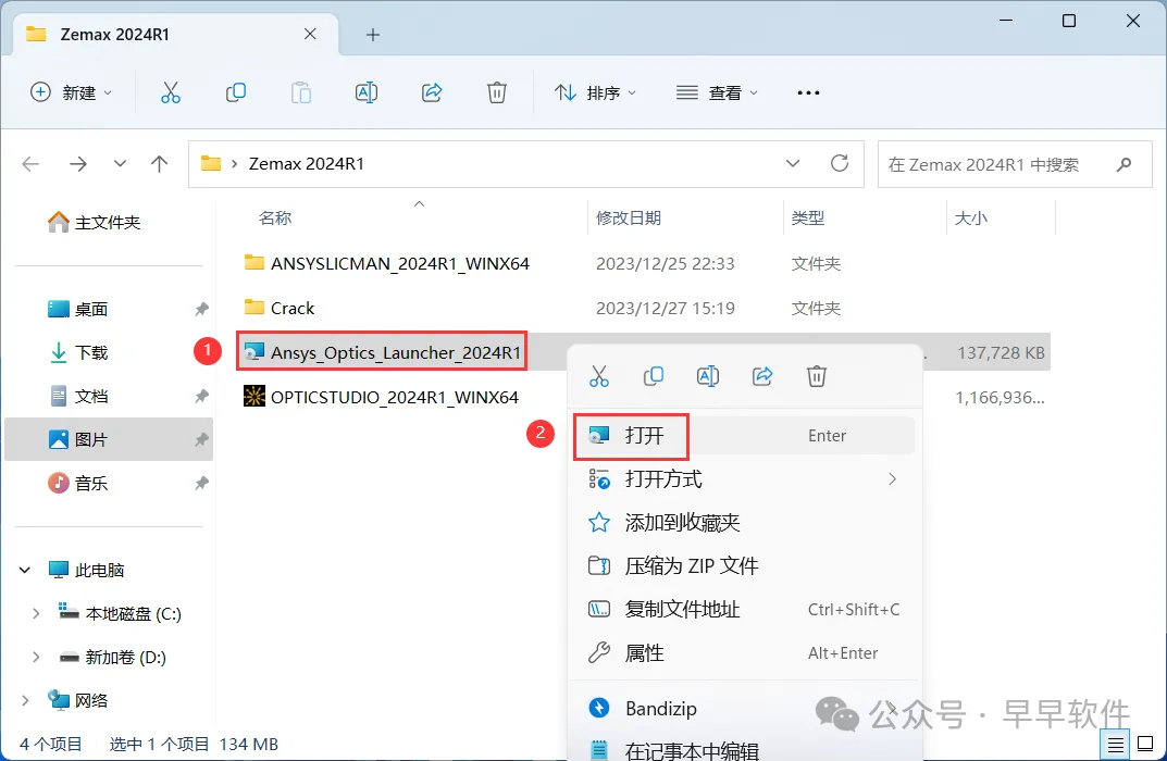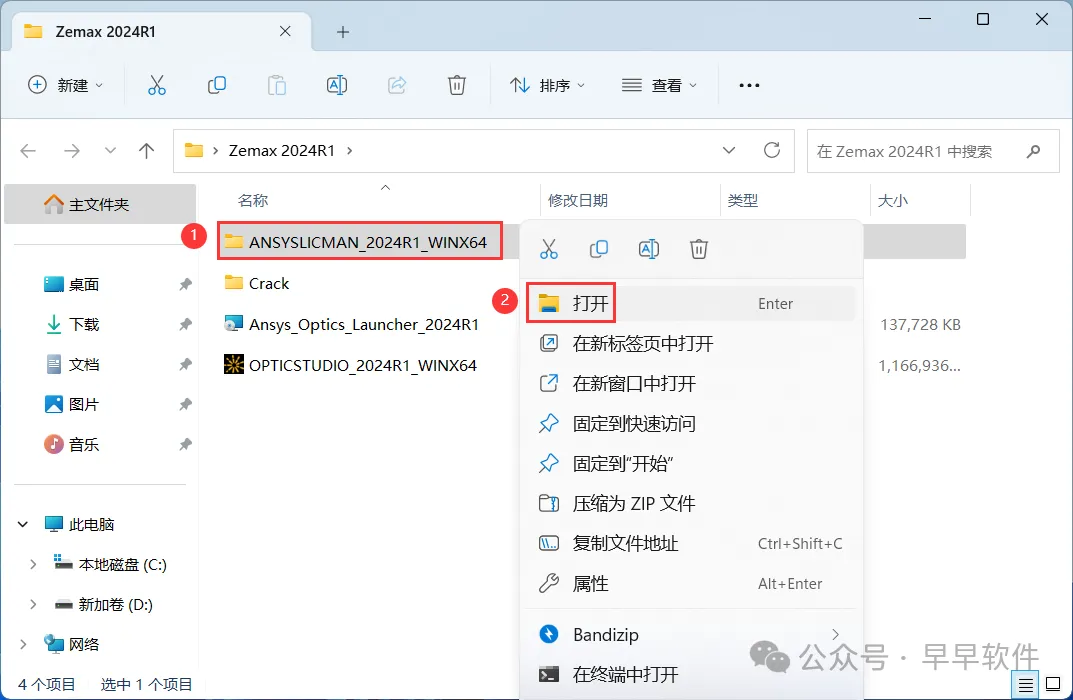 15、回到Zemax 2024R1文件夹,找到【Crack】文件夹,右键【打开】它