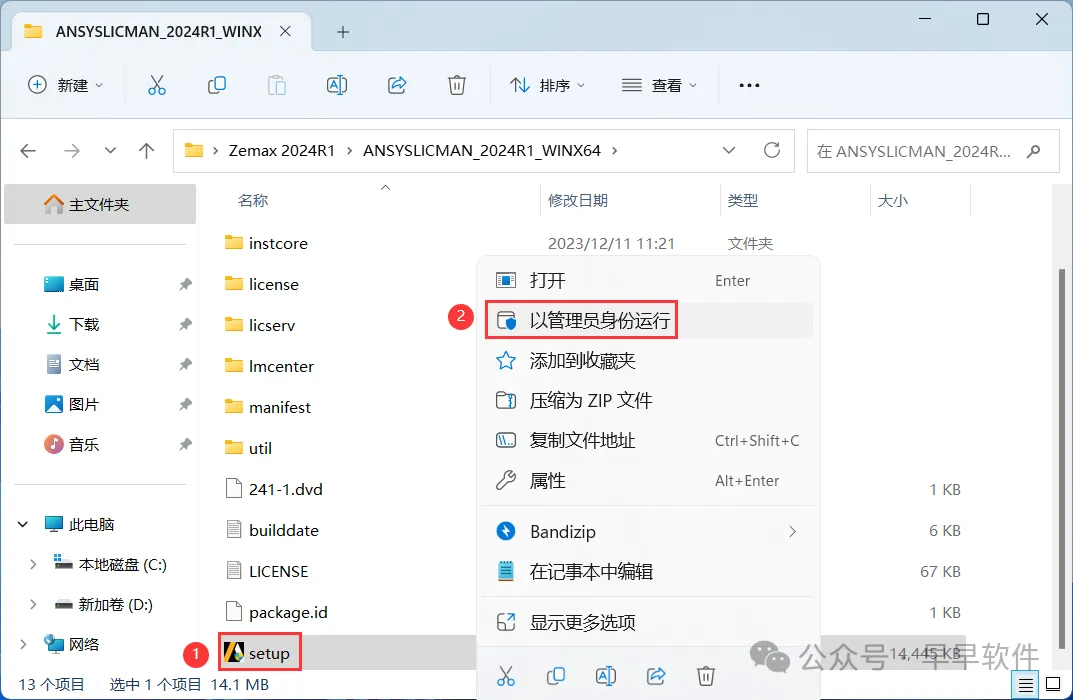 39、回到Zemax 2024R1文件夹,找到【OPTICSTUDIO_2024R1】应用程序,右键选择【以管理员身份运行】它